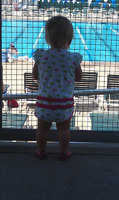 Anywho - Kennedy just completed a two week swim class yesterday. We've been at the pool EVERY DAY of the week aside from Friday for two weeks for this class. This was the first day: